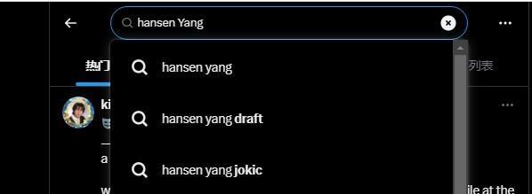 值得一提的是,在某知名社交网站上搜索hansen yang会显示hansen yang jokic(杨瀚森约基奇)的下拉词条。